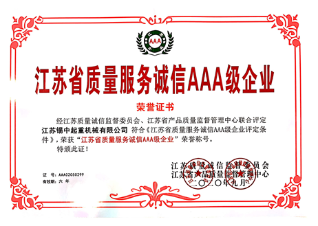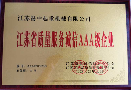 公司獲得《江蘇省質(zhì)量服務(wù)誠(chéng)信AAA級(jí)企業(yè)》